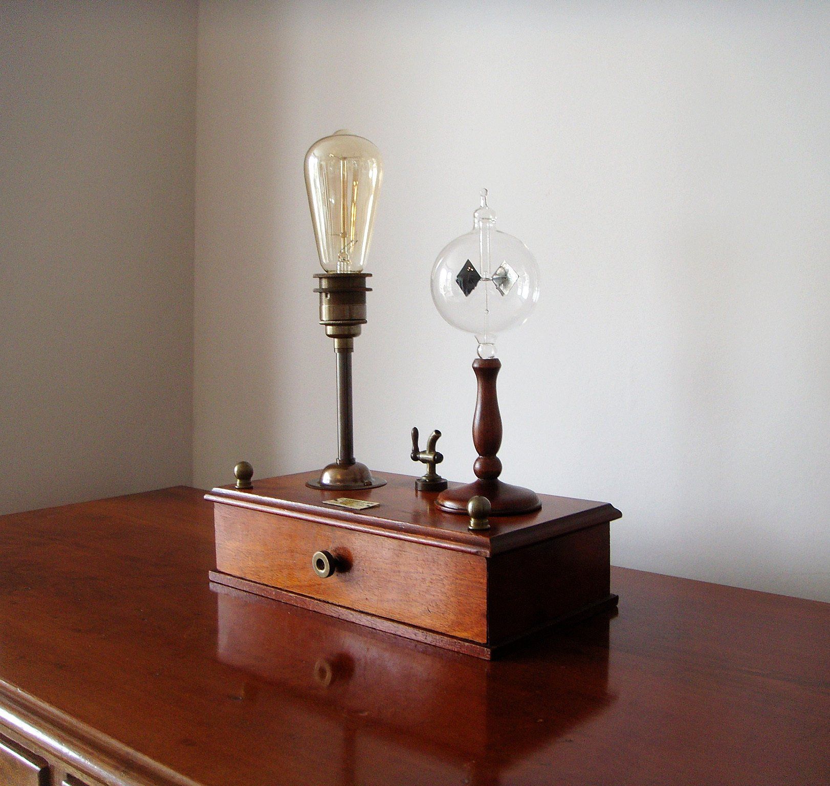 Here are some examples of my custom-built lamps, created from antique and vintage equipment. From apothecary stands to radiometers, all the equipment is lovingly restored and covers a wide and eclectic range of styles.