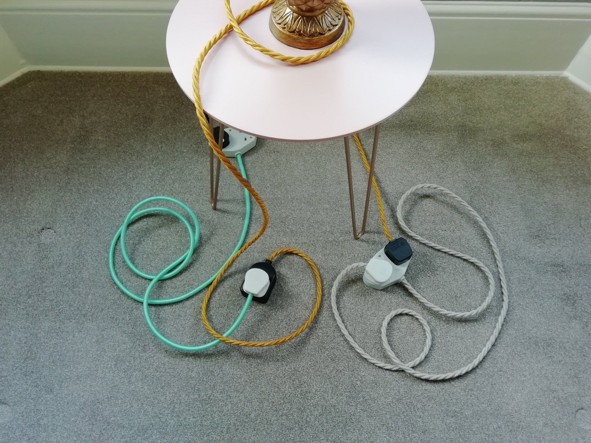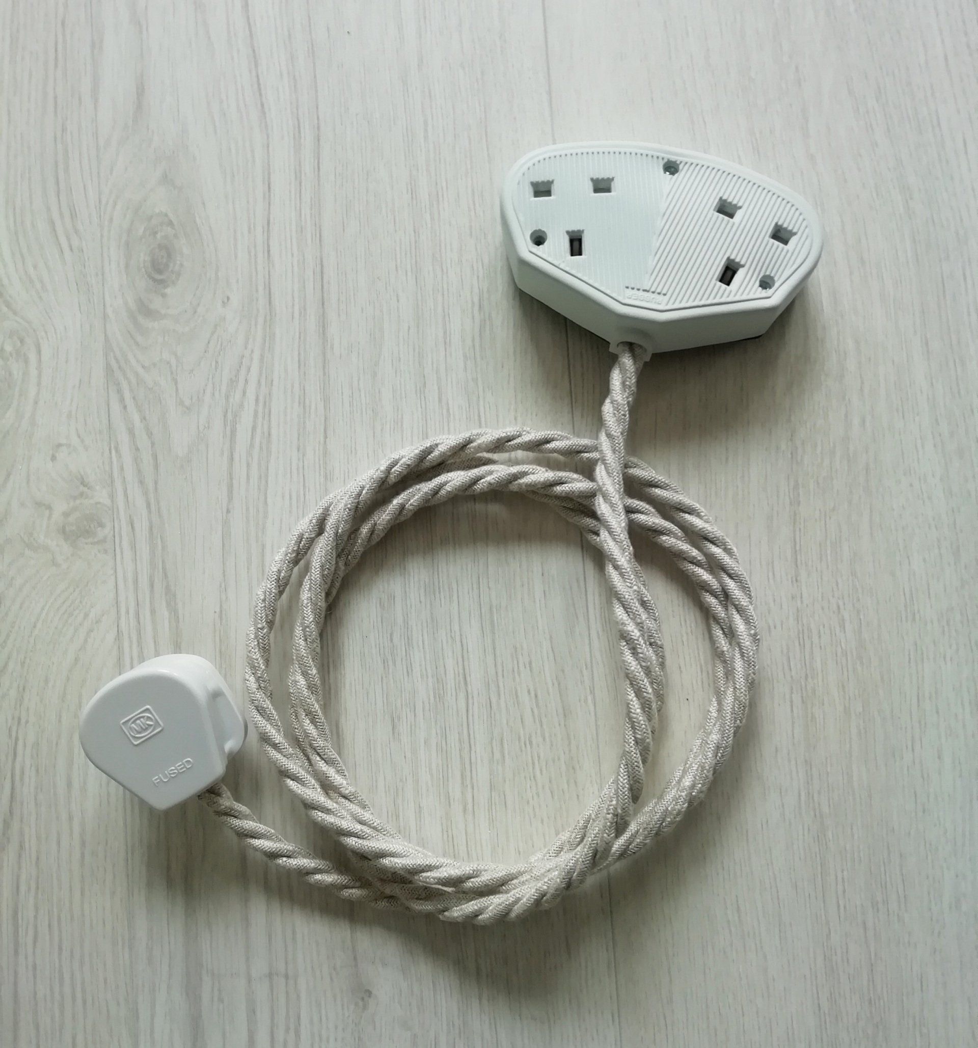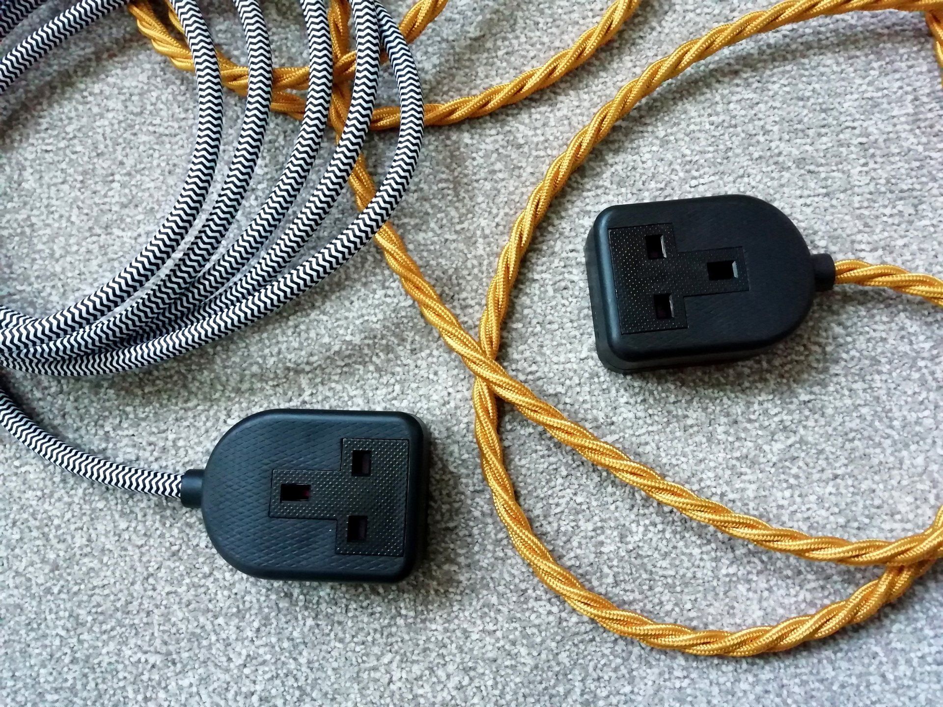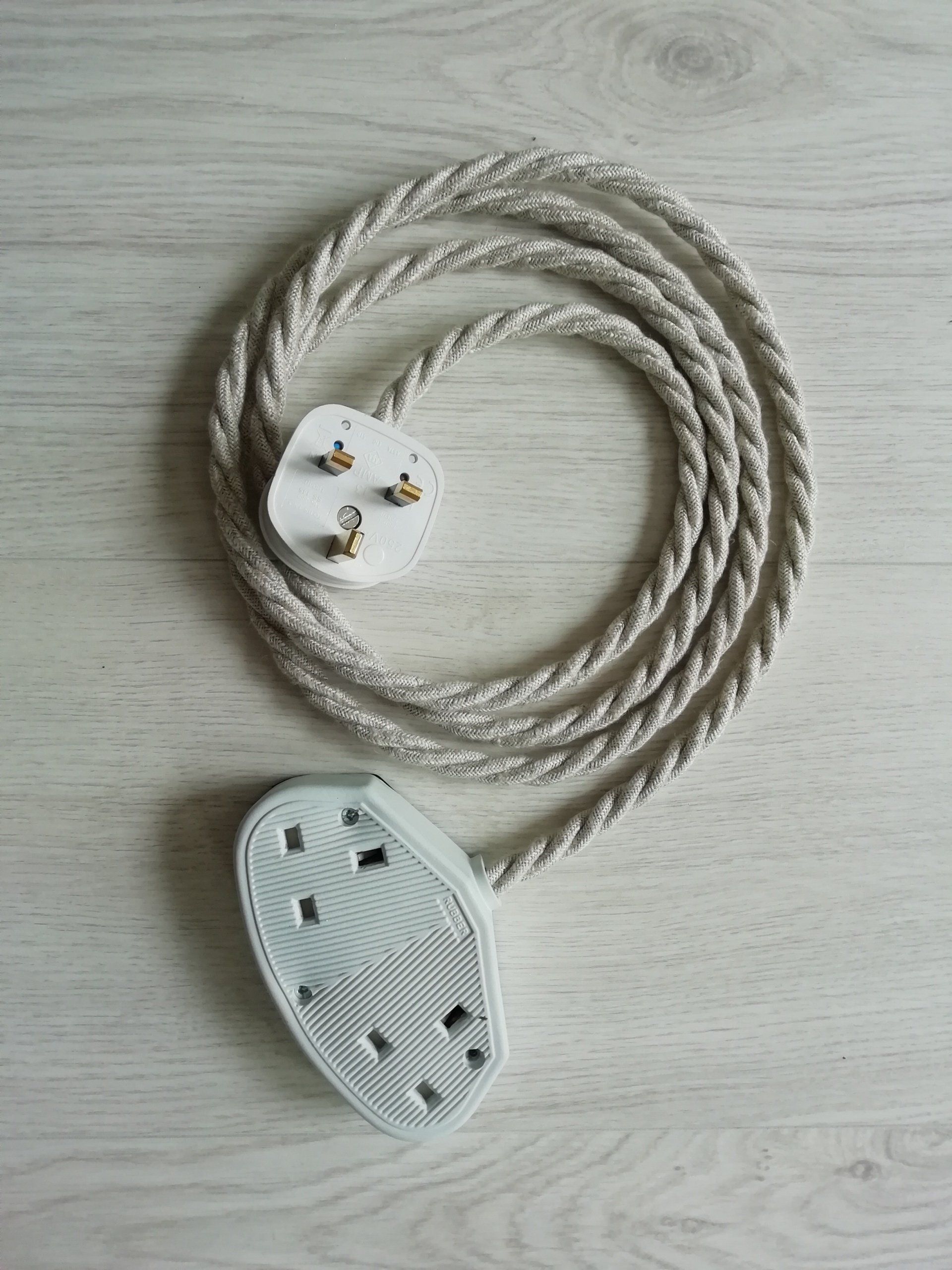 The perfect accessory for your home table lamps or other electrical extension requirements. Why settle for boring black or white plastic extension leads around the house when you can have beautiful fabric-covered vintage style leads? The cable ends feature vintage-style rubber sockets (single or double) in either black or white. They make an excellent home decor gift.