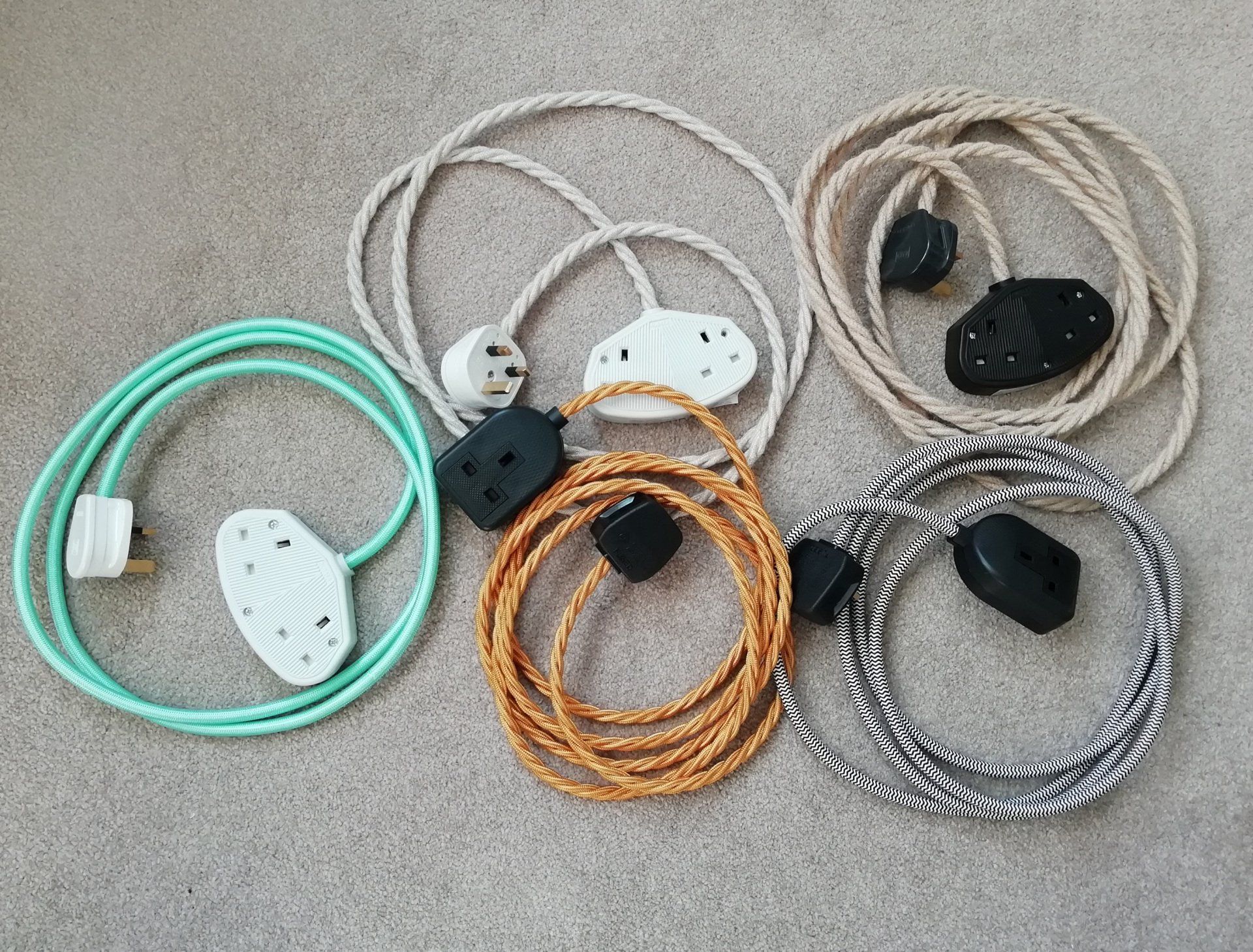 I keep a limited amount of stock so please contact me by email to find out what is currently available and what other colour options there are which can be made for you. Prices start at £35 for a 1m length single socket extension lead.